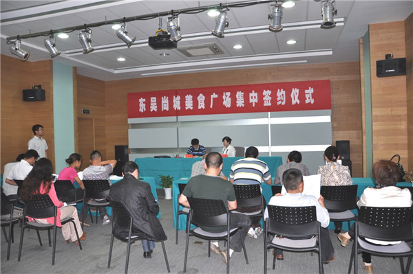 繼園區(qū)公舍配套商業(yè)樓東吳尚城商鋪火爆簽約之后,一樓美食廣場再度掀起搶租熱潮。5月12日下午,美食廣場集中簽約活動在管委會一樓會議室火熱啟動,來自新民集、市區(qū)的眾多客戶現(xiàn)場簽約,現(xiàn)場一鋪難求,當(dāng)天下午共簽約出租商戶近20家。