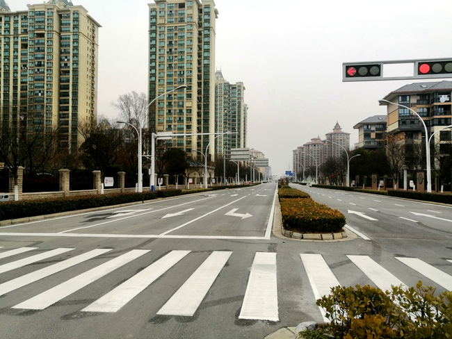 由于區(qū)內(nèi)道路交通標(biāo)線時間久和原料自身損耗原因,現(xiàn)有交通標(biāo)線不明顯、缺損較大。為提高商住區(qū)形象,園區(qū)對商住區(qū)內(nèi)所有道路交通標(biāo)線、斑馬線和網(wǎng)格線等標(biāo)線重新進行施劃,同時對通達大道重點路口進行節(jié)點改造。