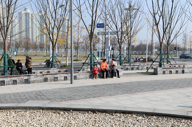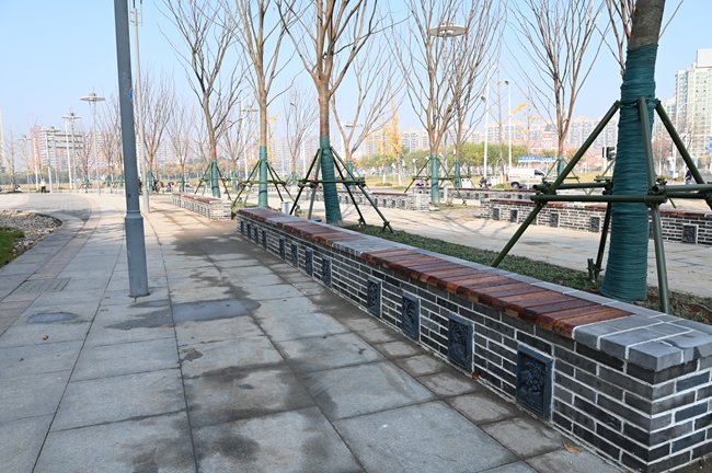 此次針對蘇州公園東北角處進行重新栽植18株20CM的彩葉樹種的櫸樹和日本矮麥冬進行栽植,同時為迎合蘇州街西入口整體景觀效果相協(xié)調(diào),增加更具“蘇式”韻味景觀長條形式的坐凳滿足周圍居民生活休閑。