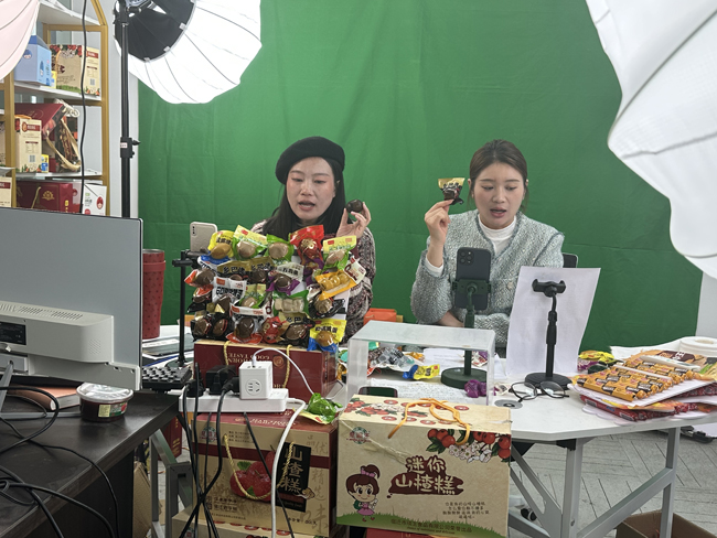 當天,電商產(chǎn)業(yè)園內(nèi)的“直播大棚”人氣爆棚。主播們在鏡頭前與消費者展開互動,充滿激情地介紹各類商品,通過生動的語言和直觀的展示,將商品的特點和優(yōu)勢傳達給觀眾,引導(dǎo)他們進行購買,主播們還以抽獎、送禮等方式增加直播的趣味和互動,吸引更多觀眾的參與。