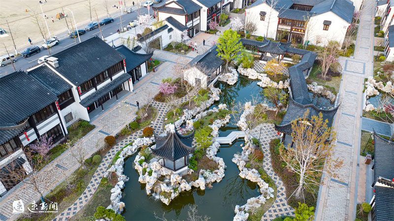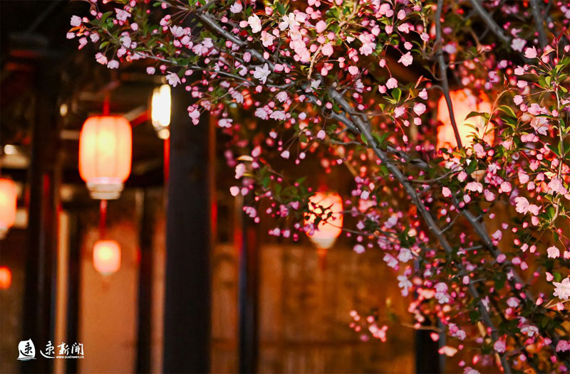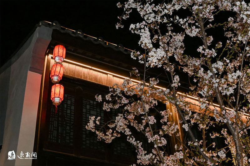 3月31日,蘇州街盛開(kāi)的櫻花、海棠、玉蘭與蘇式街區(qū)相互映襯,美不勝收。