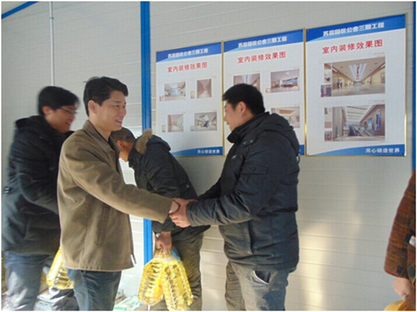 近日,園區(qū)開發(fā)公司黨支部開展春節(jié)前夕走訪慰問活動(dòng),對(duì)公司在建工程工地的10余名生活困難工人進(jìn)行了慰問,為他們送上慰問品,帶去節(jié)日的問候。公司黨支部書記、副總裁劉建華參加活動(dòng)。